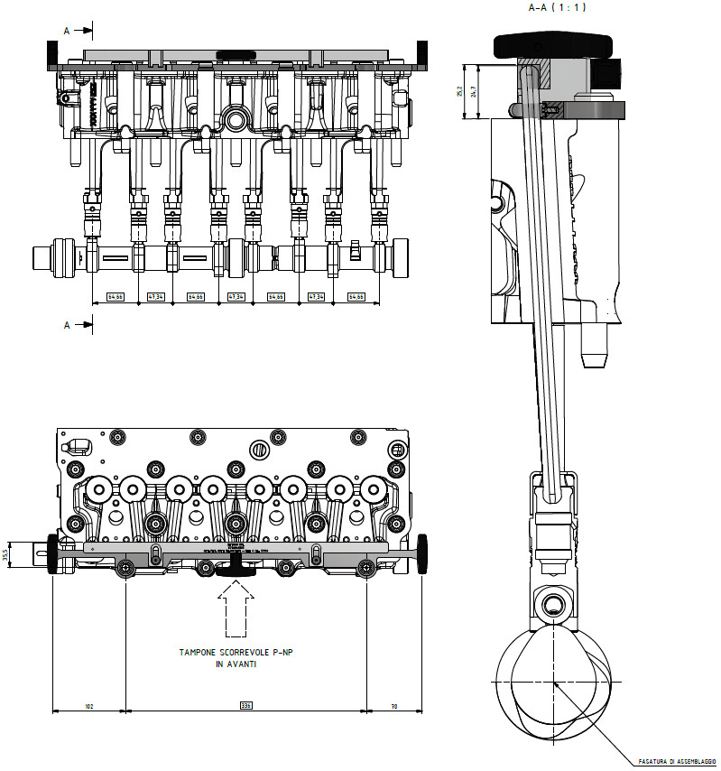 The operator positions the mask, places the rods and locks them to the tool, then checks that they have been correctly seated and therefore rest in the right way on the cams.